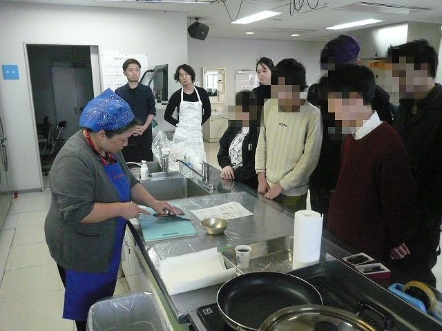 捨てるところが無く、すべて食べられるという事に学生たちは驚いていました。