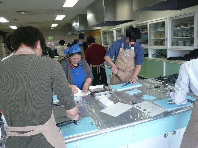 料理教室は「アジをまるまる一匹料理する」をテーマとして行いました。一人1匹のアジを捌き、「たたき丼」「ムニエル」「アラ汁」、「骨をせんべい」を作りました。