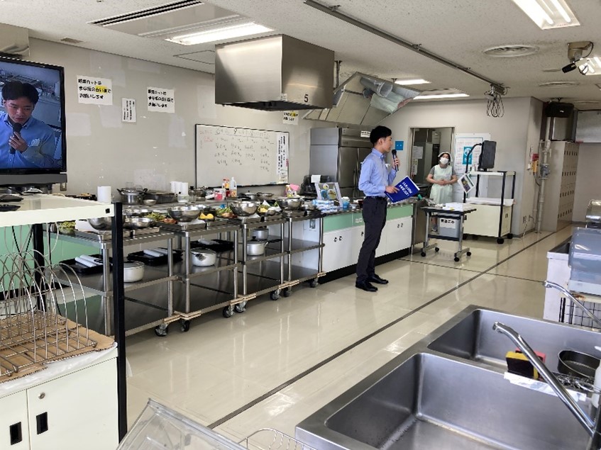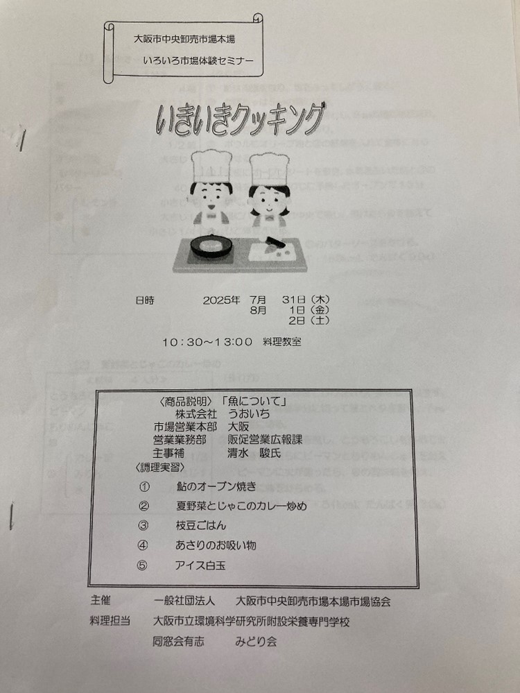 今回は、市場見学を行った後でお魚のお話を行い、料理教室という流れでした。市場協会様は、管理棟内の各企業様とこの取り組みをされており、7月は弊社とコラボ企画でした。