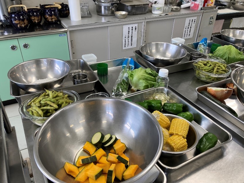 今回のみどり会様がご考案されたレシピは「鮎のオーブン焼き」「夏野菜とじゃこのカレー炒め」「枝豆ごはん」「あさりのお吸い物」「アイス白玉」でした。アユは定番の塩焼きではなくバターで洋風なアレンジで大変美味しく頂きました。他のレシピも食材の良さが引き立つメニューになっており弊社の食育活動のレシピにも参考にしたく思いました。
