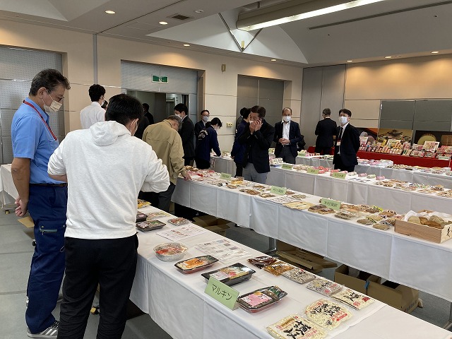 お取引先である約60社の業者様が参加してくださいました。練り製品・麺類・おせち・惣菜・玉子製品・お菓子・餅・こんにゃく・漬物などを取扱っておられます。