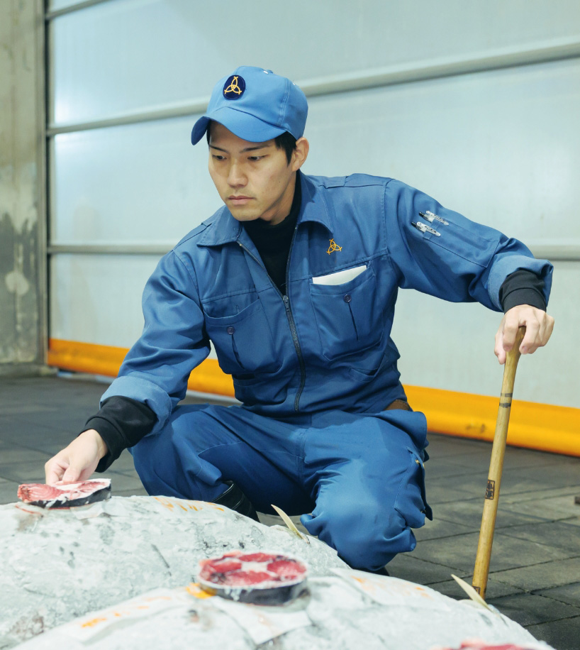 父も水産業に携わっており、その縁でこの道を選びました。最初は生マグロから始まり、徐々に冷凍、そして加工製品へと担当を広げていき、セリの準備、売り場での仕入れ、取引先への商談、午後には売上管理や発注と、日々緊張感の中で仕事を進めています。