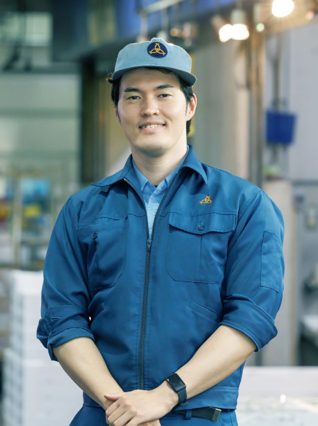 現在は、アジやサンマの開きなどの干物商品の販売を担当。具体的には、仕入れと販売の両方を手がけています。売り場の様子を自ら見に行ったり、仕入れ担当者から情報を集めたりしながら、何が売れ筋かを見極め、仕入れる品種や量を判断する毎日。多くの人の食卓に並ぶ商品に関わることで、日常の中に自分の仕事の成果が生きていると感じられ、その実感が日々の原動力になっています。扱う金額が大きいため、感覚を掴みにくい面もありますが、日々の目標を一つずつ達成しながら、確実に前に進む。その積み重ねを大切にしながら仕事に向き合っています。