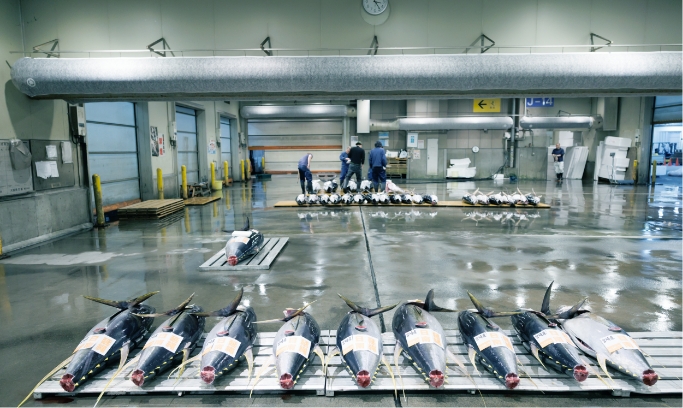 - 全国の産地から生鮮魚介類を集荷し、せり売りや相対取引にて販売を行います。